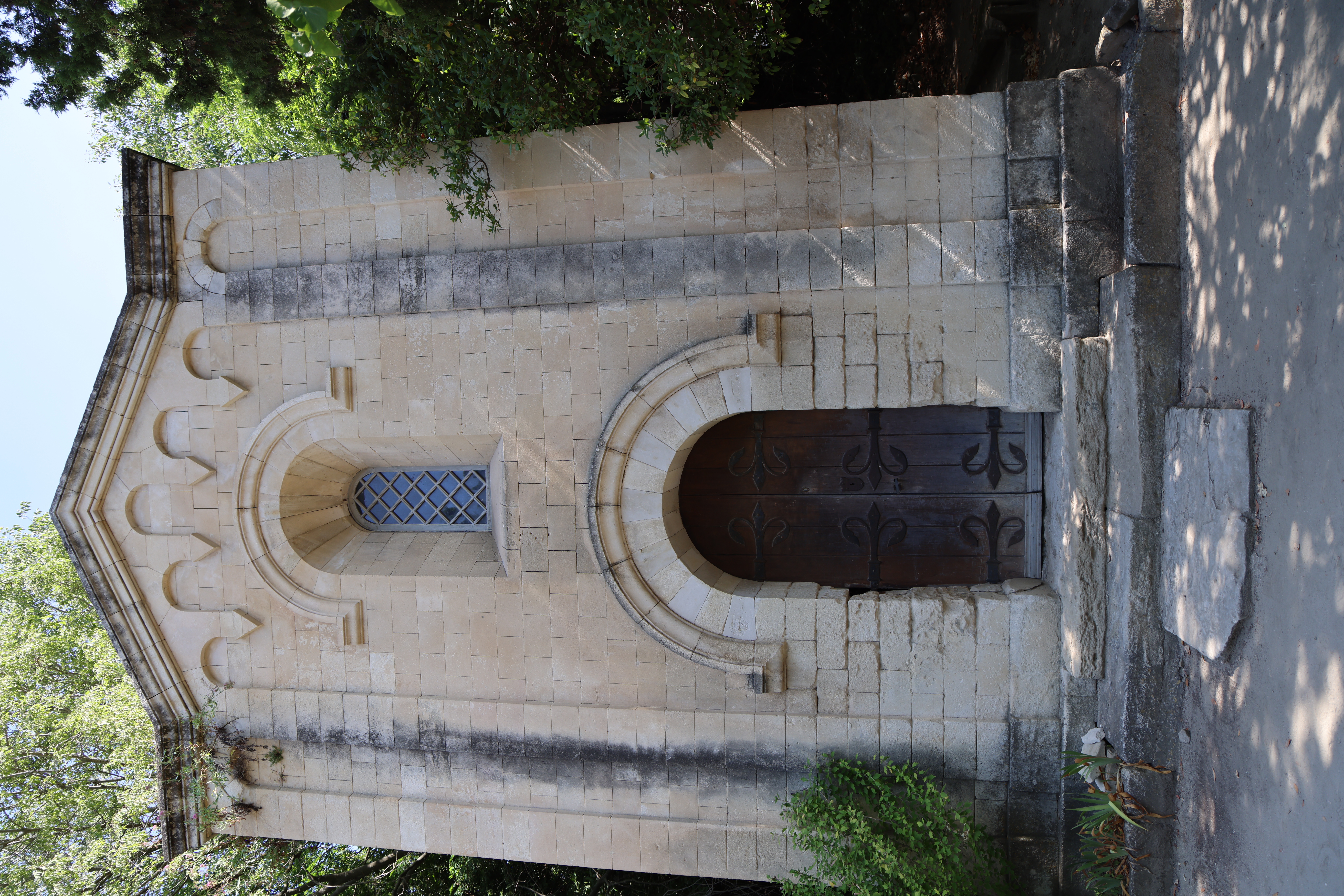 La partie construite est surmontée par une lanterne des Morts dont le style s'inspire de l'architecture de l'amphithéâtre romain.