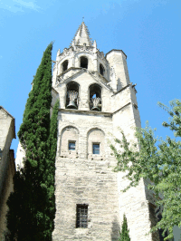 collégiale Saint-Didier d'Avignon :est une ancienne collégiale gothique édifiée au milieu du XIV° siècle. Située au centre de la ville, elle a pris la place d'une vieille église que la tradition hagiographique faisait remonter au VII° siècle avec Agricol d'Avignon comme fondateur. Mais le premier texte qui la signale est daté de 1008 lors d'une donation de Saint-Didier et de sa manse faite par l'évêque Rostaing d'Avignon à l'abbaye de Montmajour. L'édification d'une nouvelle église est due à la présence des papes d'Avignon. Ce fut le cardinal Bertrand de Deaux qui, dans son testament, imposa à ses héritiers de faire construire sur sa succession une église.