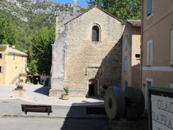 Cette église a été construite par les moines victoriens sur l'emplacement d'un antique sanctuaire dédié à un dieu païen des eaux. Elle comprend une nef à trois travées barlongues donnant sur un transept qui s'ouvrait sur trois absides. Une imposante colonne romaine qui décore la partie sud du chœur et un chapiteau réutilisé sur la colonne opposée restent les témoins du temple antique. Une porte, située sur le côté ouest, mettait l'église en relation avec le cloître attesté au XIII° siècle. Dans son état actuel, elle peut être datée du XII° siècle, mais est, en réalité, la restauration d'un édifice du XI°. Cette datation est confirmée par la dédicace qui est gravée sur le montant septentrional droit de l'arc d'ouverture de l'abside. À la fin du XII° siècle, a été édifiée, entre l'abside et l'absidiole droite, une minuscule chapelle qui abrite un enfeu avec un sarcophage carolingien dit de saint Véran. Lors de sa construction ont été utilisés en réemploi dix fragments de plaques de chancel décorés de pampres, et un autel tabulaire de marbre. Il existe aussi, datables du X° siècle, deux oblits conservés au musée Calvet d'Avignon.