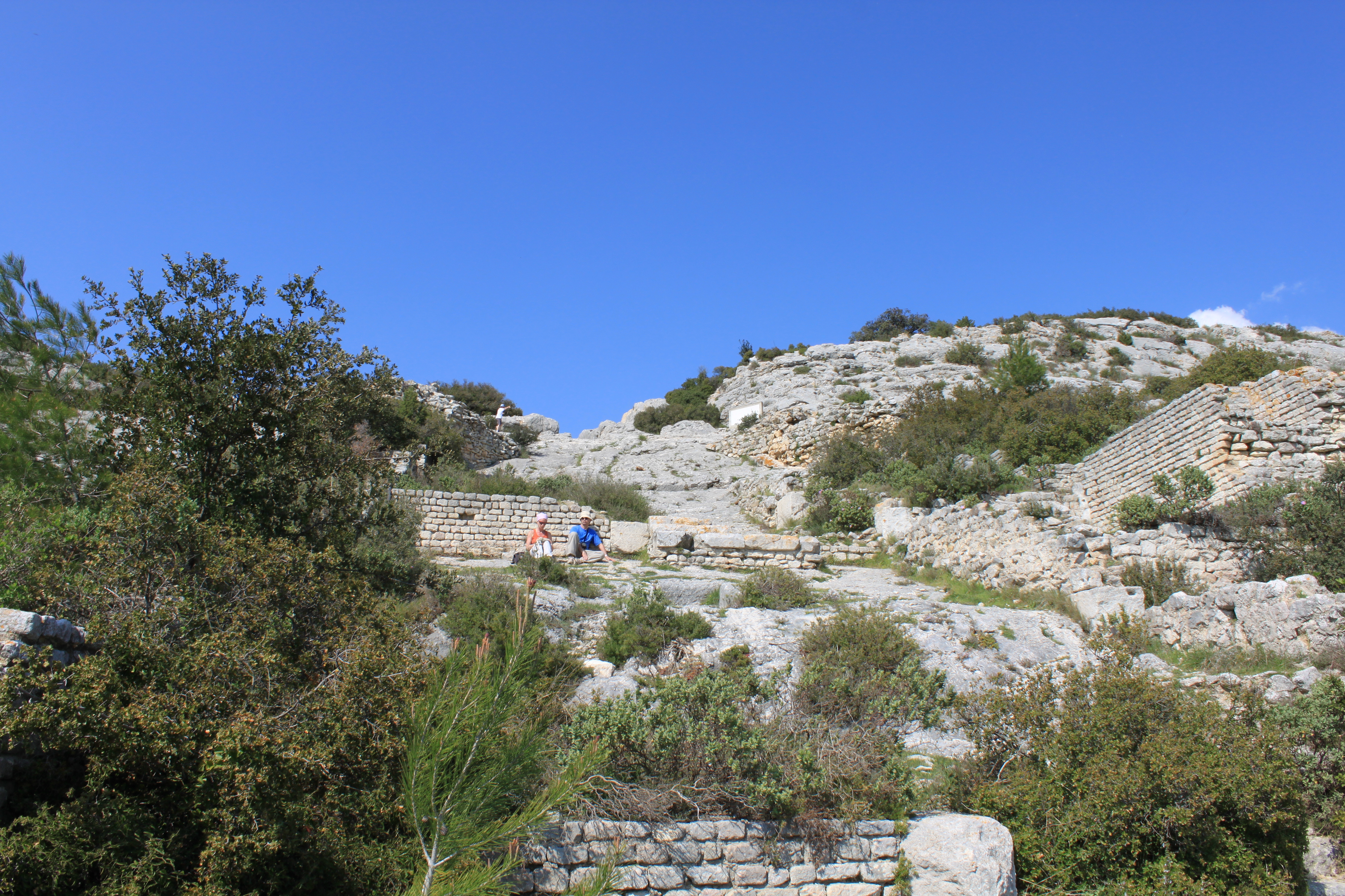 Au cours des siècles suivants, la population des Alpilles diminue de façon conséquente : le comptoir grec d'Arles attire de nombreux habitants venus de toute la région. Mais dès la fin de l'Âge du fer (II° – I° siècles avant J.-C.), plusieurs sites des Alpilles commencent à être occupés à nouveau. Plusieurs villages se développent et des monuments sont construits dans un style tardo-hellénistique. On retrouve notamment sur plusieurs sites des dalles de toiture en calcaire tendre scié, preuve de cette influence grecque.
